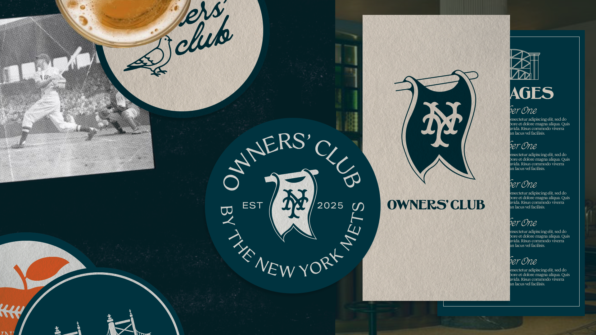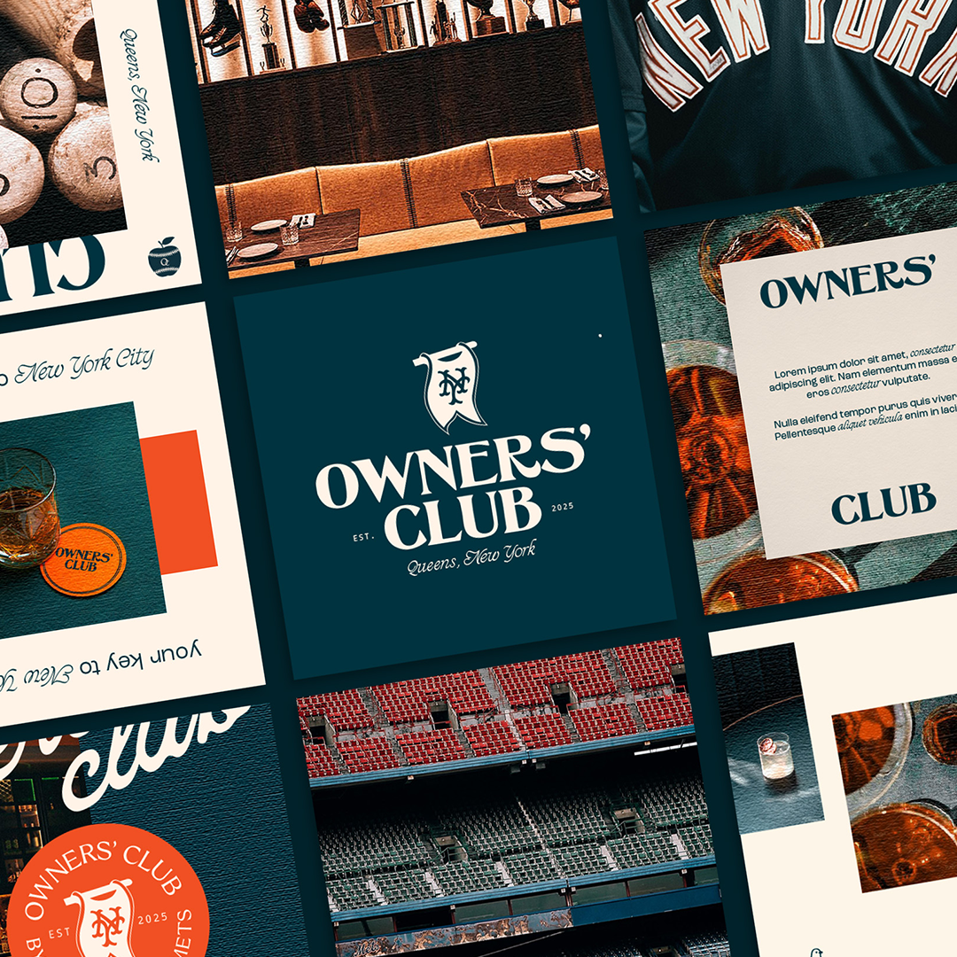 This Art Deco-inspired art direction blends the elegance of 1920s design with the New York Mets’ rich history. Geometric Deco motifs and vintage baseball imagery are paired with a refined color palette of Mets blue, orange, and metallic accents. A signature stamp adds sophisticated, secondary element, while nods to iconic New York architecture and the team’s legacy create a bold, timeless aesthetic that celebrates both the Mets and the city.